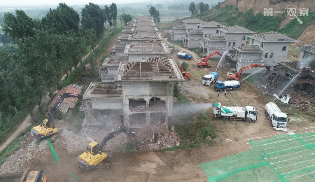 2018年8月14日,大型机械对西安市鄠邑区蒋村镇的违建别墅进行拆除。(新华社记者 邵瑞 摄)